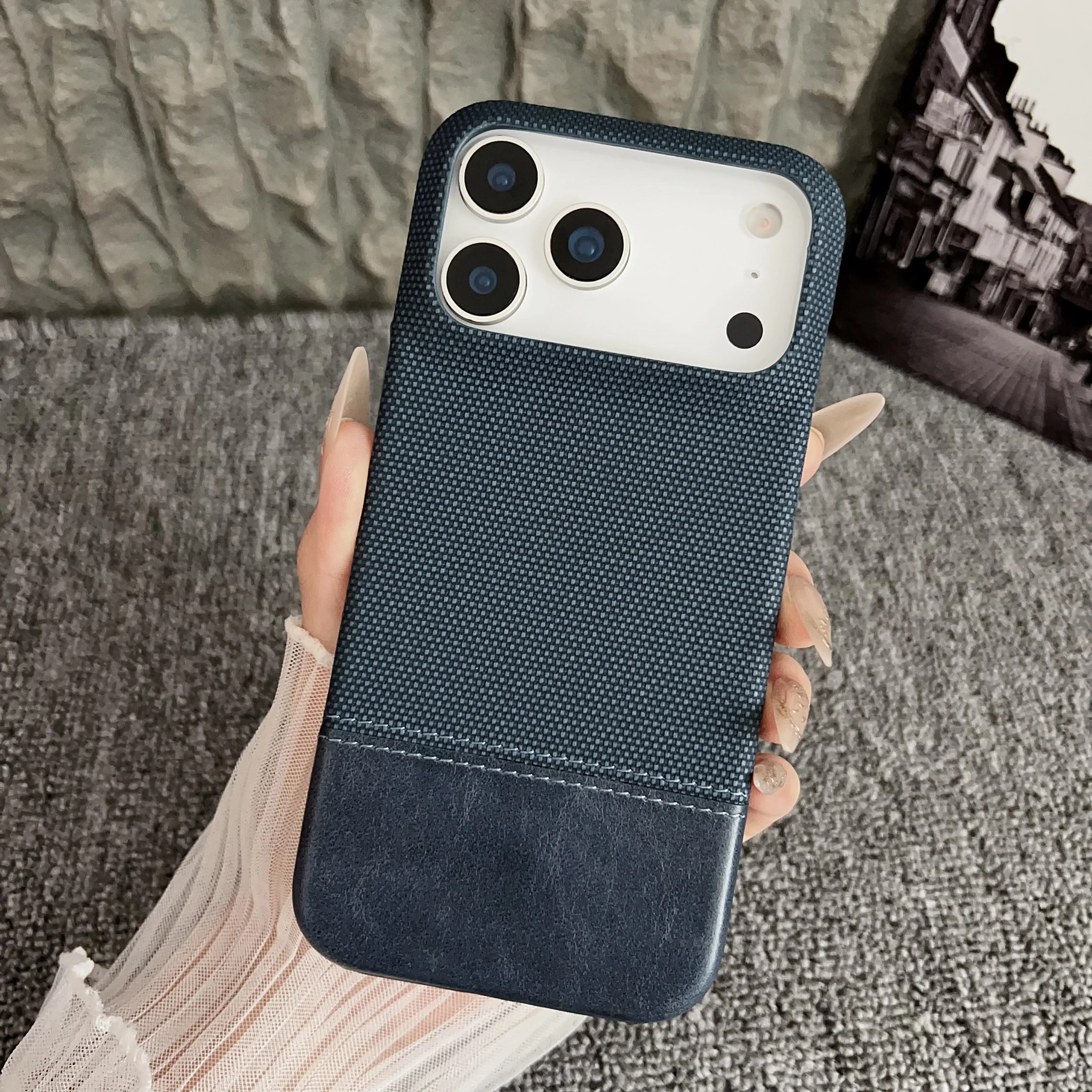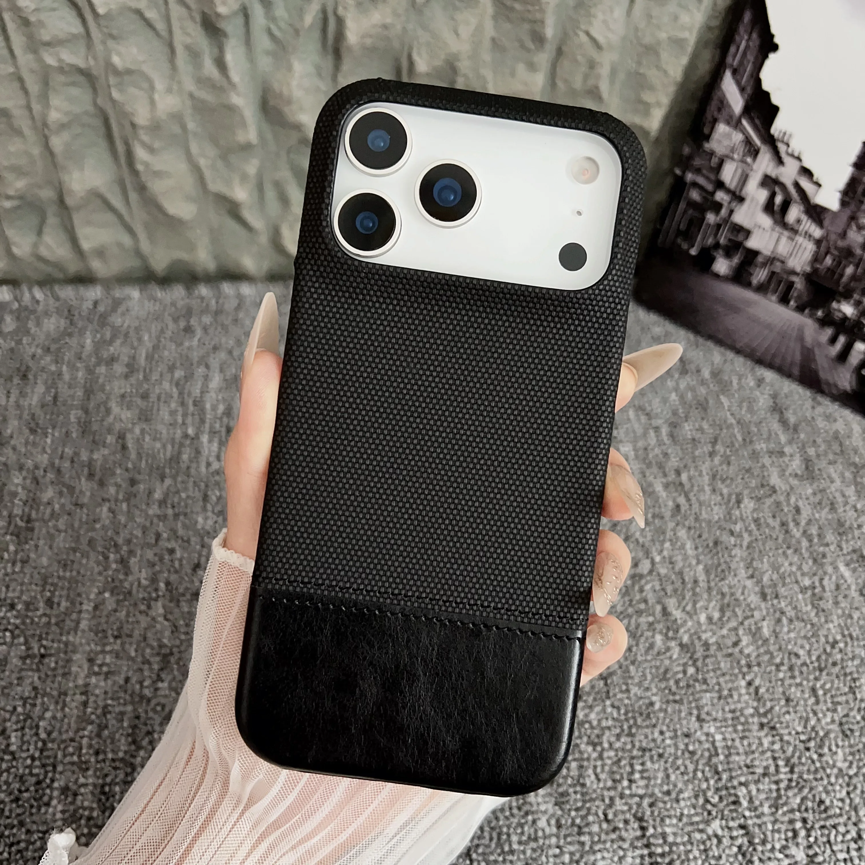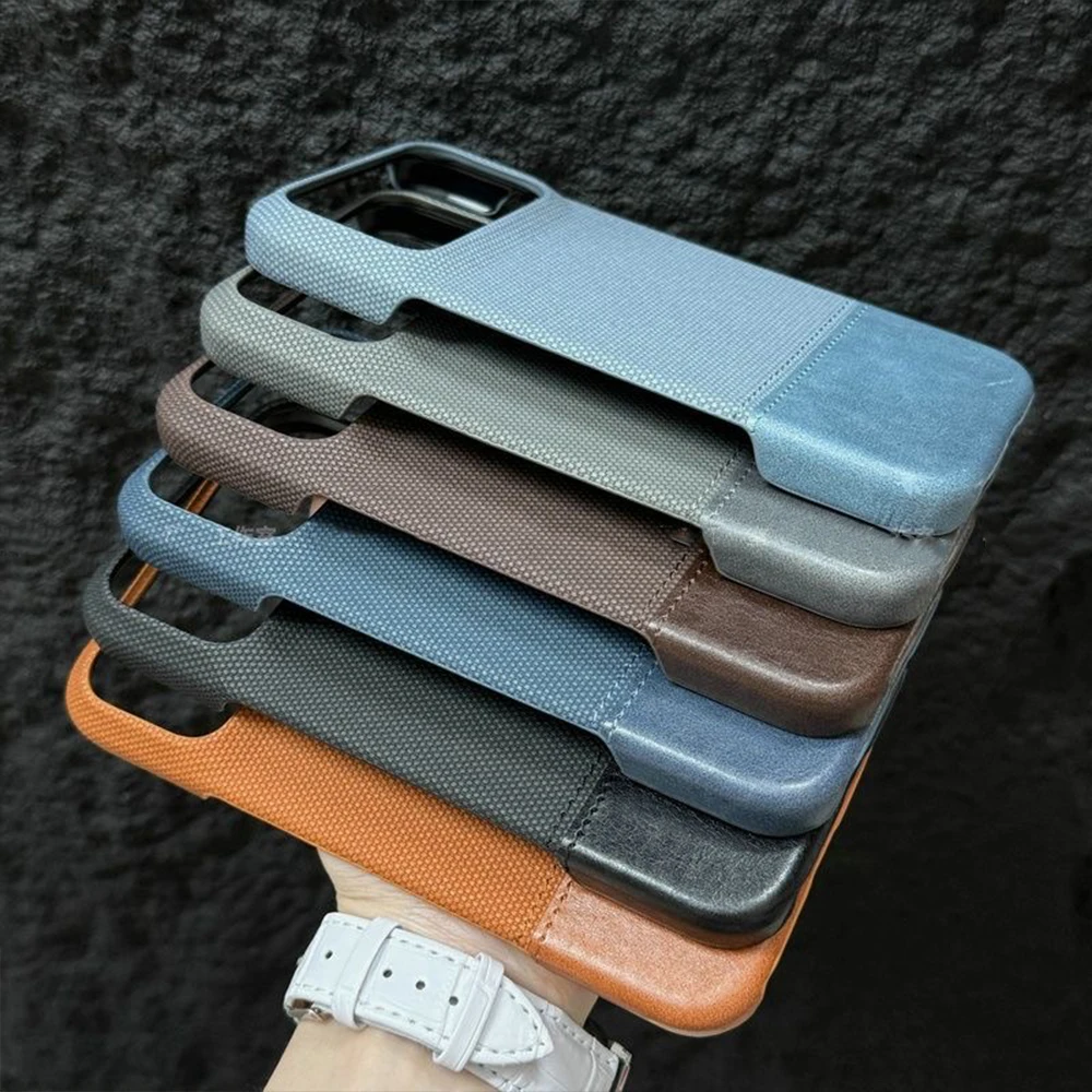 Original Splice Leather Nylon Fabric Case For iPhone 17 Air 16 15 14 Plus 13 12 Pro Max Frameless Cooling Matte Shockproof Cover