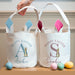 Customized Burlap Easter Basket with Bunny Handles - Personalized Easter Egg Hunt Tote - Festive Easter Party Bag for Emilia