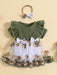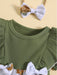 Infant Baby Girls Romper Dress Flower Embroidery Knit Rib Ruffles Crew Neck Jumpsuits Summer Bodysuits with Bow Headband, for Outdoor
