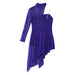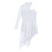 Kids Girl One Shoulder Lyrical Modern Dance Dress Lace Asymmetric Split Ballet Gymnastics Figure Skating Leotard Dress Dancewear
