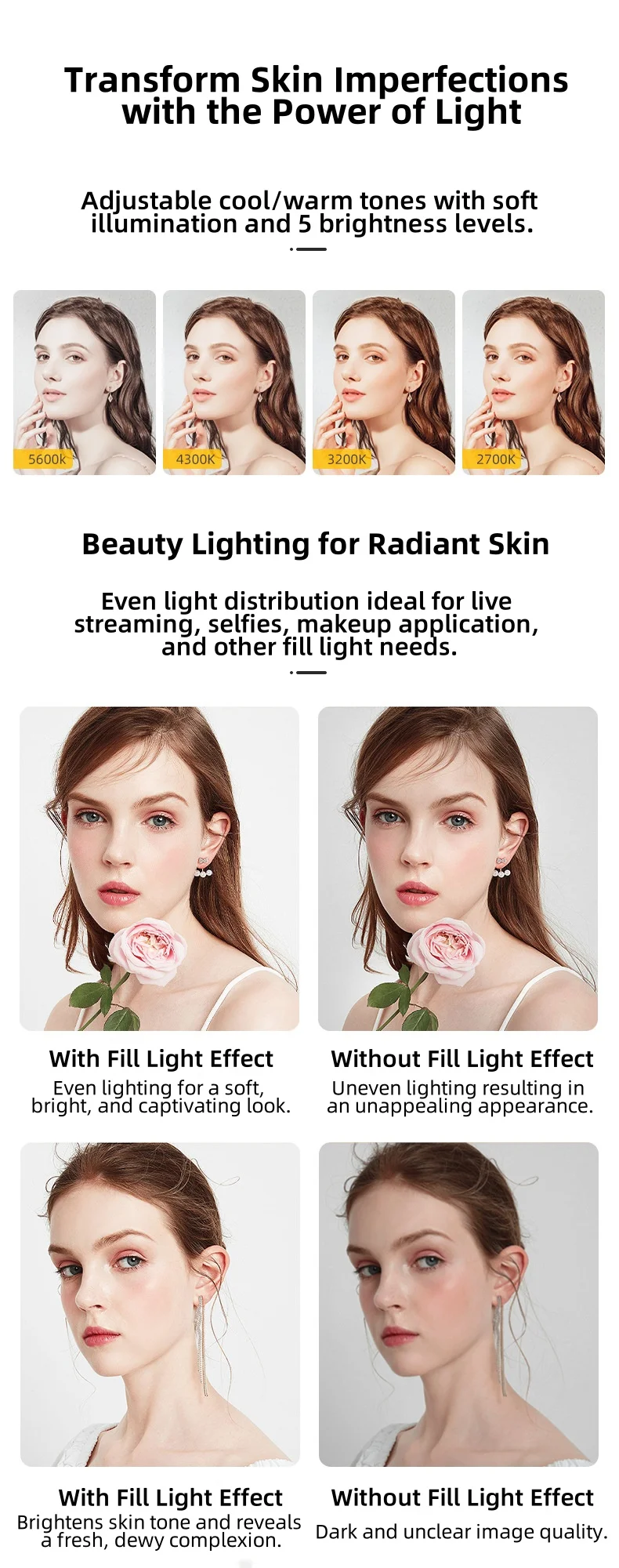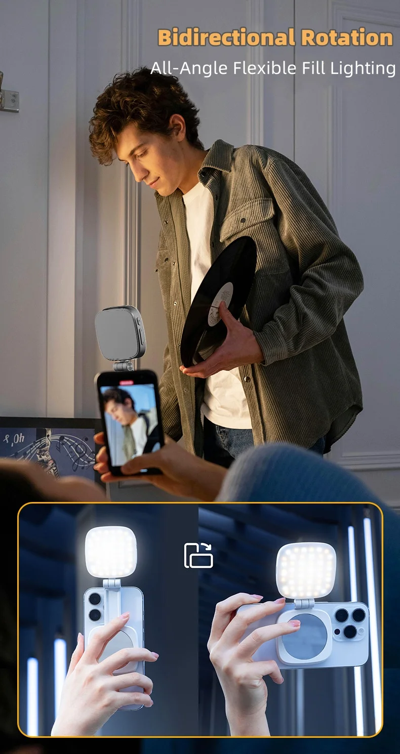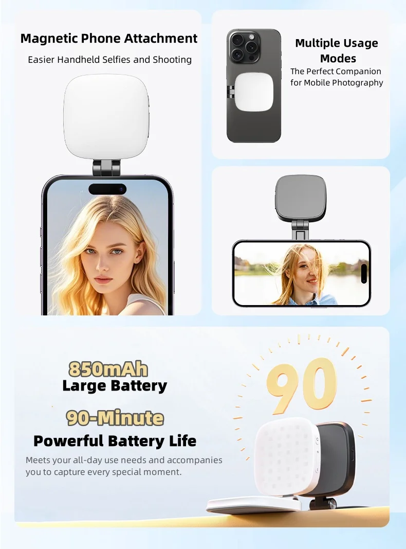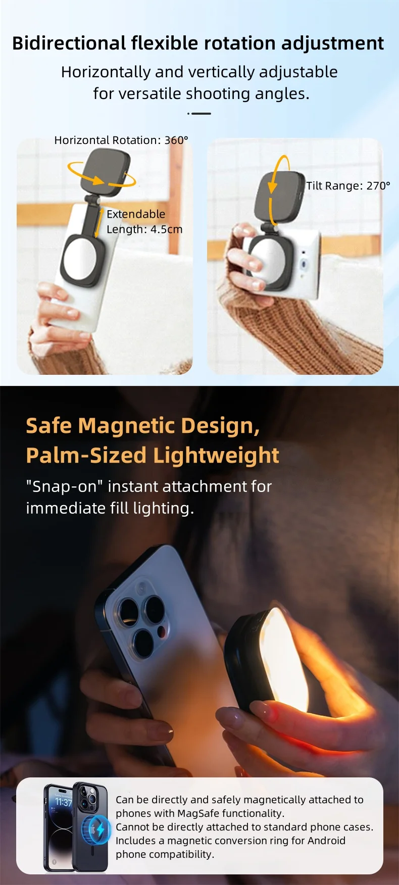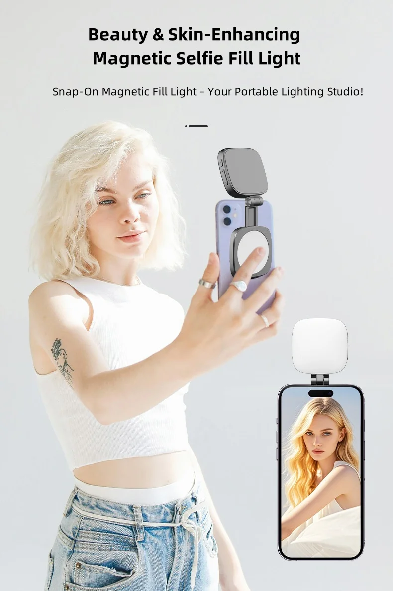 Magnetic Phone Fill Light for Selfie & Live-Streaming LED Beauty Light with Long Battery Life 4 Color Temps & 5 Bright Levels