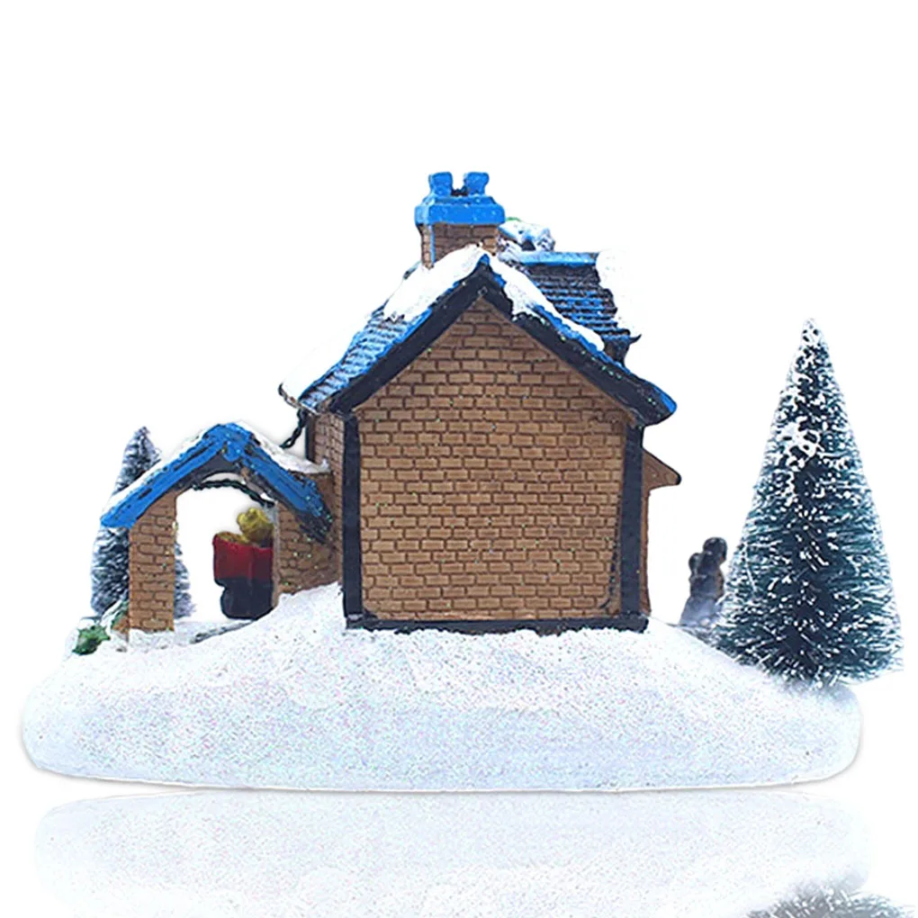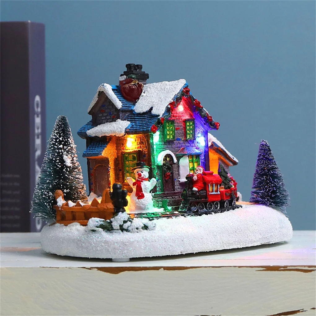 Small Train Christmas Village Figurines LED Lights Luminous Landscape Figurines