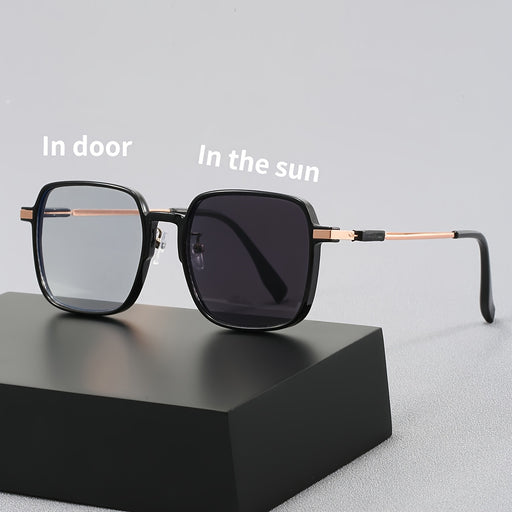 Square Light-Sensitive Color-Changing Flat Glasses for Men and Women
