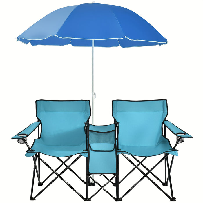 Portable Folding Picnic Double Chair W/Umbrella Table Cooler Beach Camping