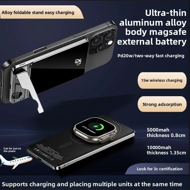 Qi2 Certified Magnetic Wireless 10000mAh Ultra-thin Power Bank with Built-in Cable External Battery for Small Gifts Customizable
