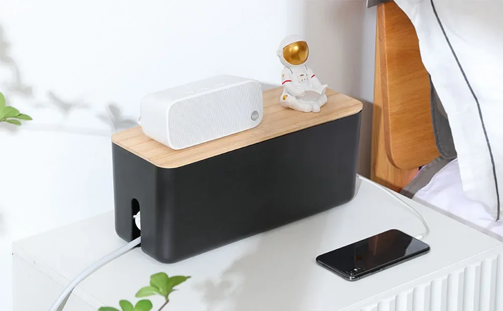 Cable Management Box, Bamboo Cover Wire Junction Board Storage Box, Hide Wires & Power Strips, Desk Computer Cable Organizer Box