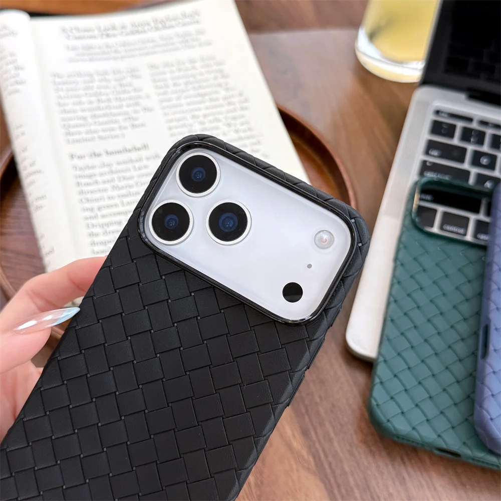Braided Textured Phone Case for IPhone 17 AIR 16E 15 14 Plus 13 12 11 Pro Max Liquid Silicone Knitted Pattern Breathable Cover