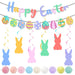 Happy Easter Banner Easter Wreath Easter Eggs Bunny Hanging Swirls Ornaments Indoor Outdoor Spring Easter Themed Party Supplies