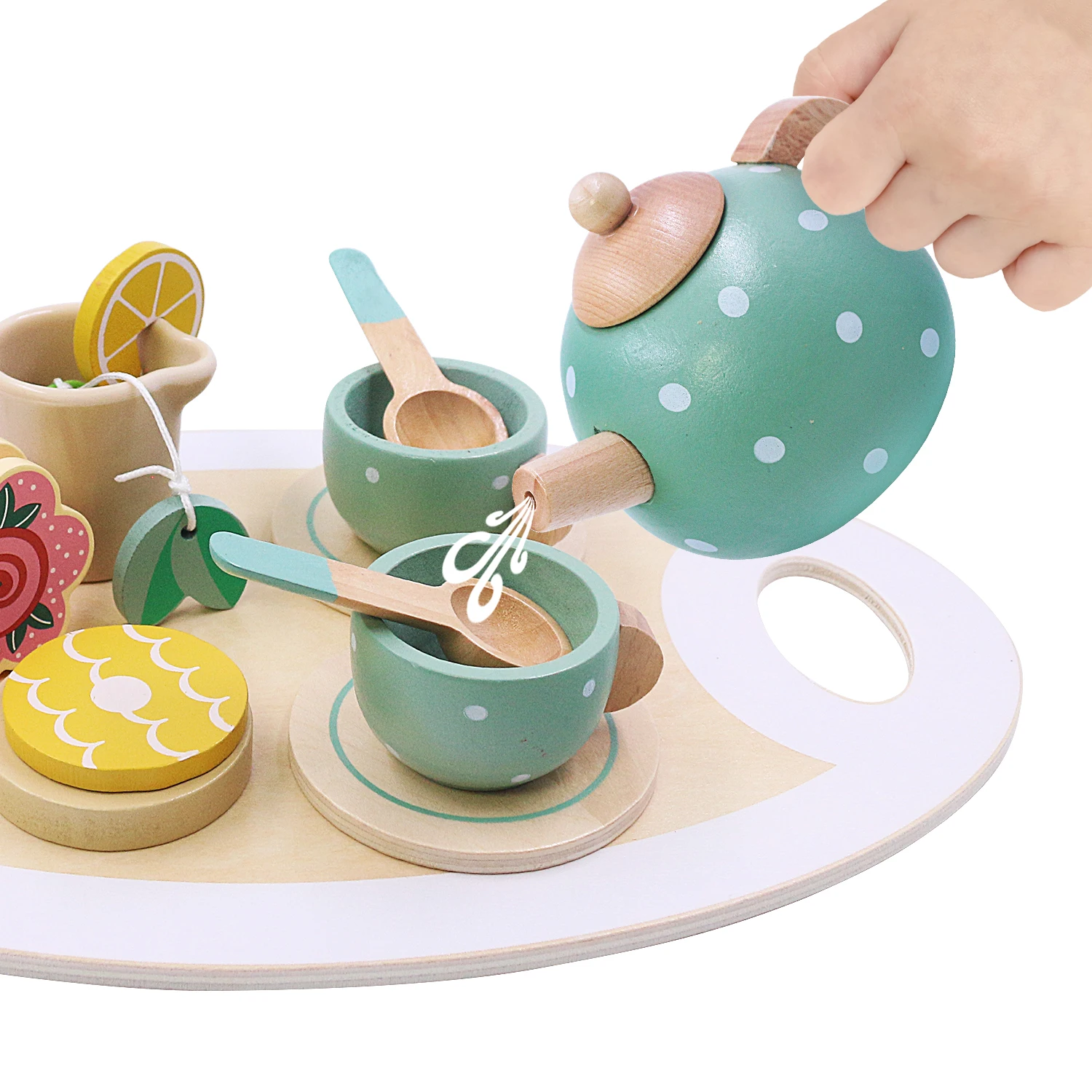 Wooden Tea Set Toys Pretend Play Kitchen Accessories for Kids Afternoon Tea