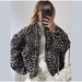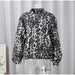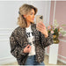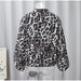 Fashion Leopard Zipper Long Sleeved Women's Jacket Retro Round Neck