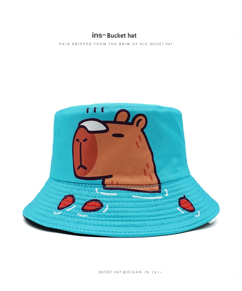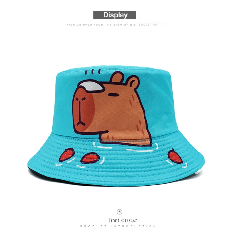 Bocca Cartoon Capybara Bucket Hat Animal Printing Pattern Fisherman Hats Cute Double Sides Panama Cap Sunscreen Caps New Style