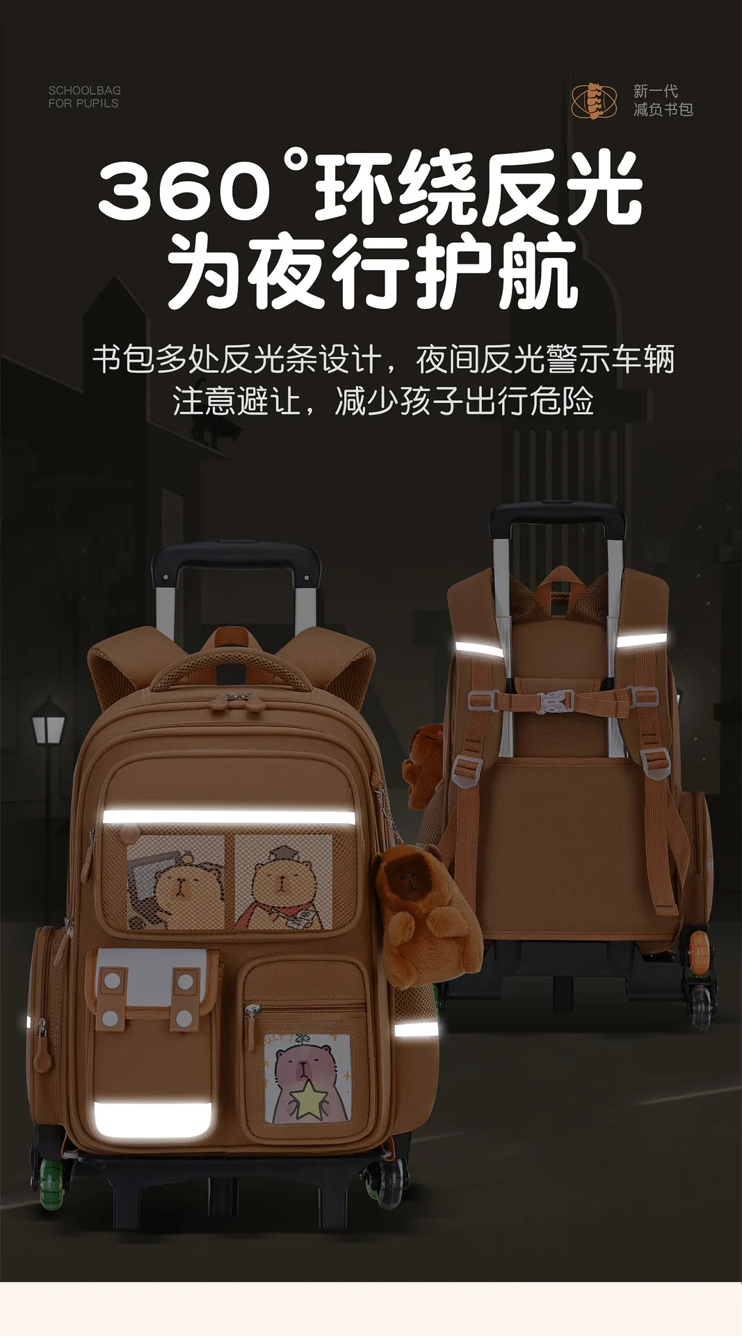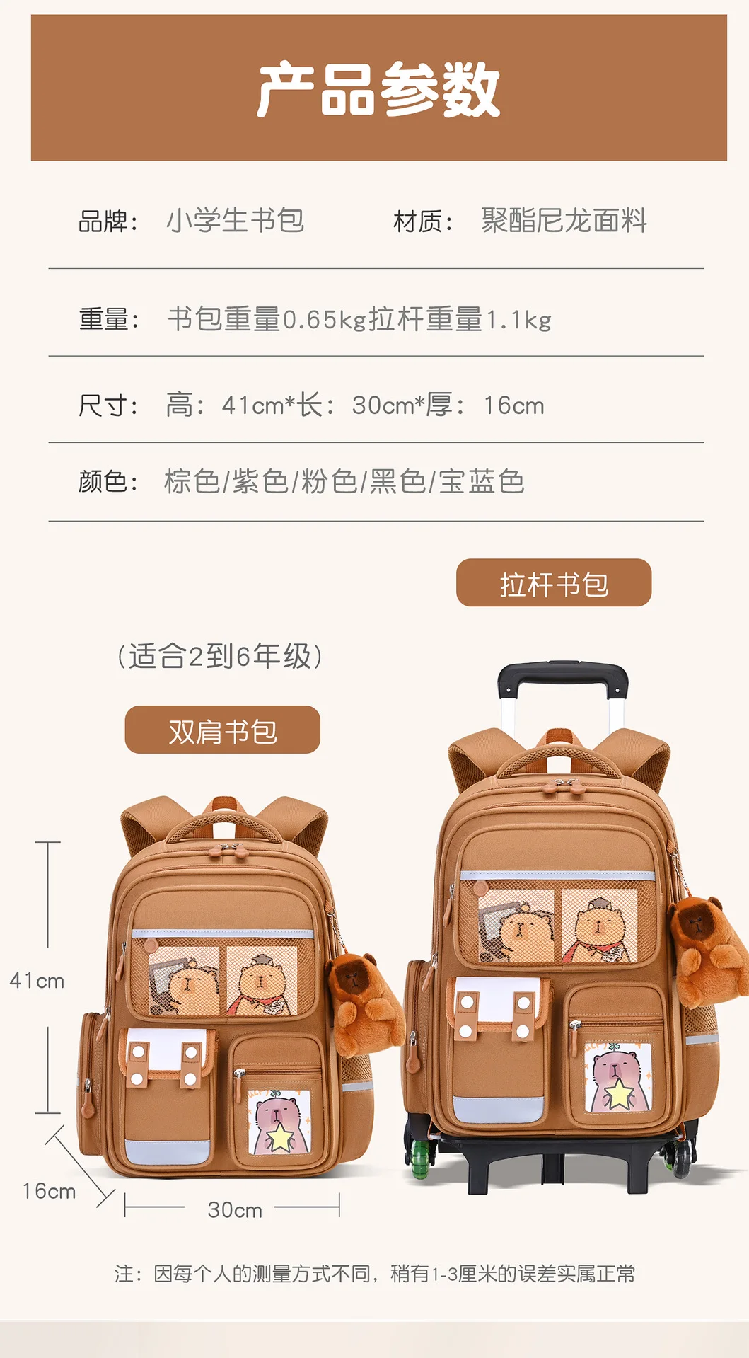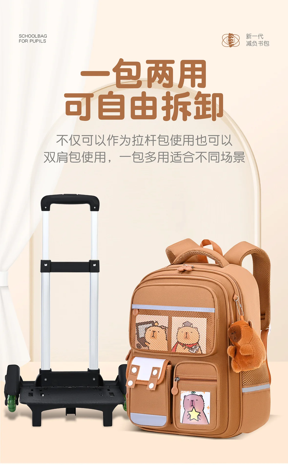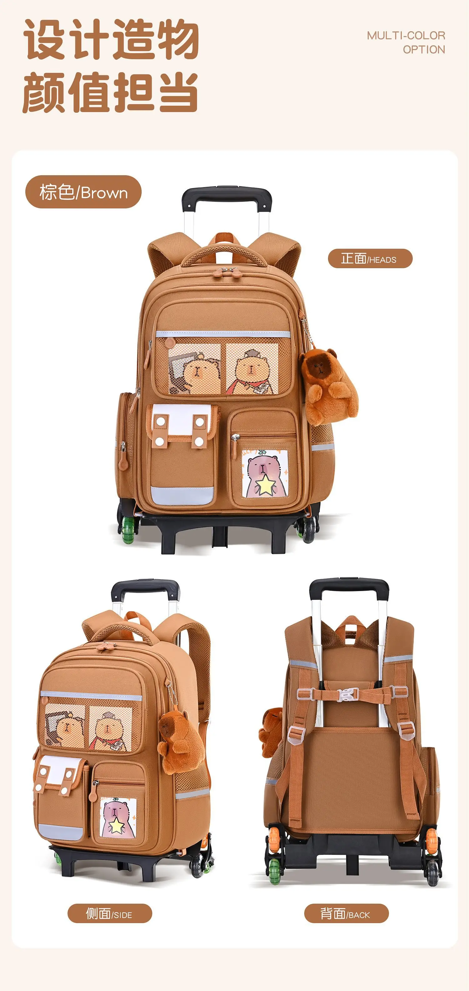 Capybara Children Cartoon School Backpack with Wheels Students Bags for Girls Boys Trolley Schoolbag Rolling Wheeled Backpacks