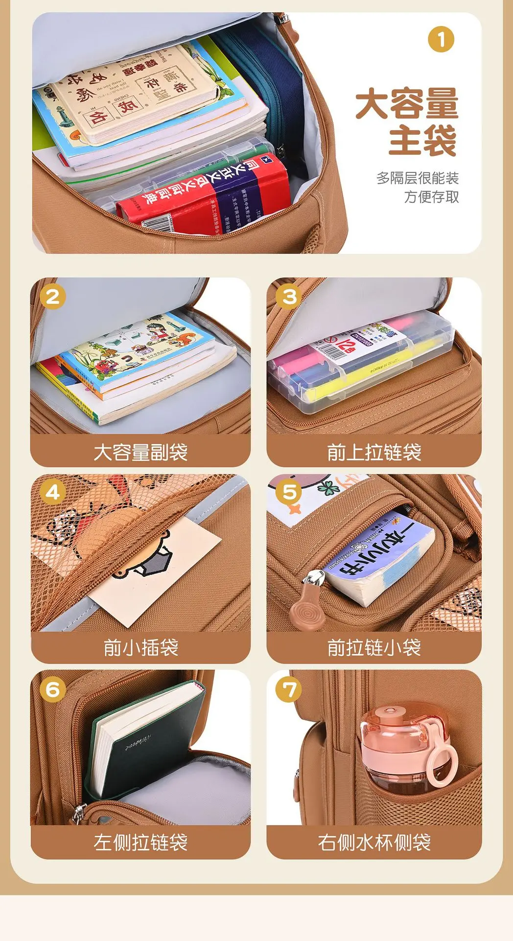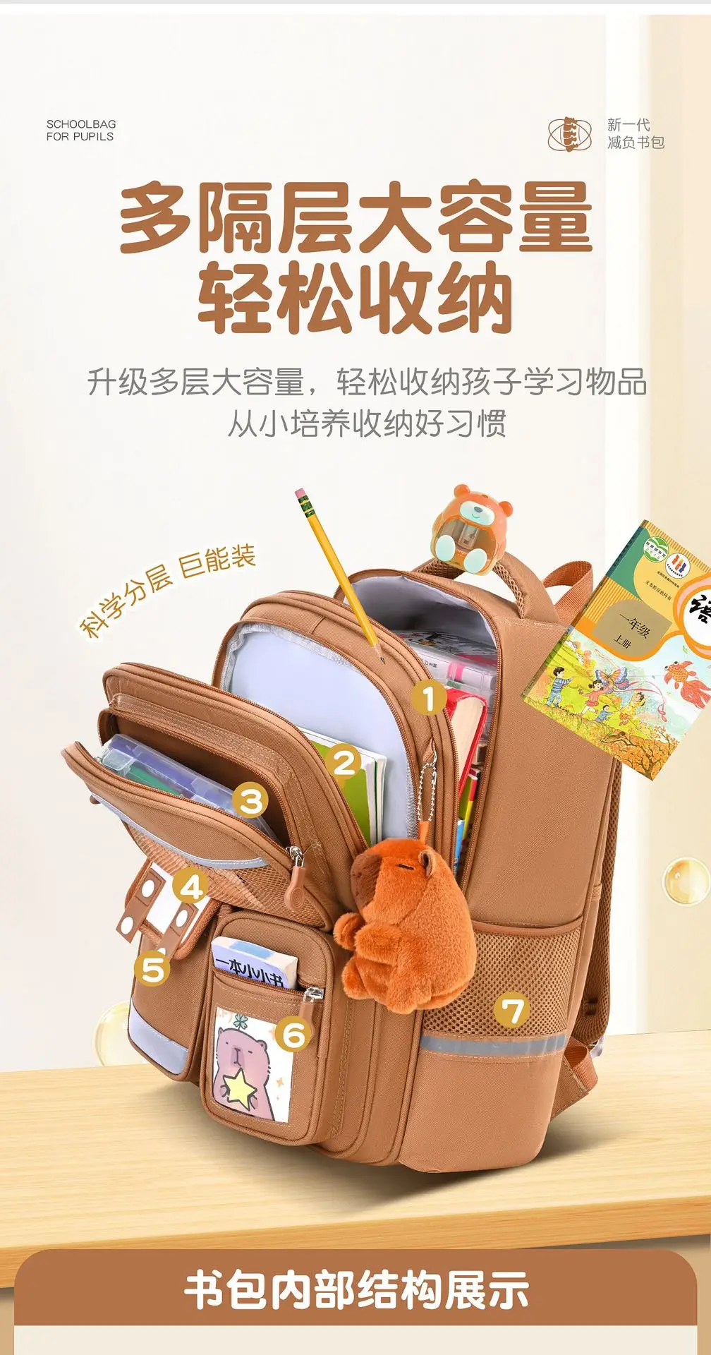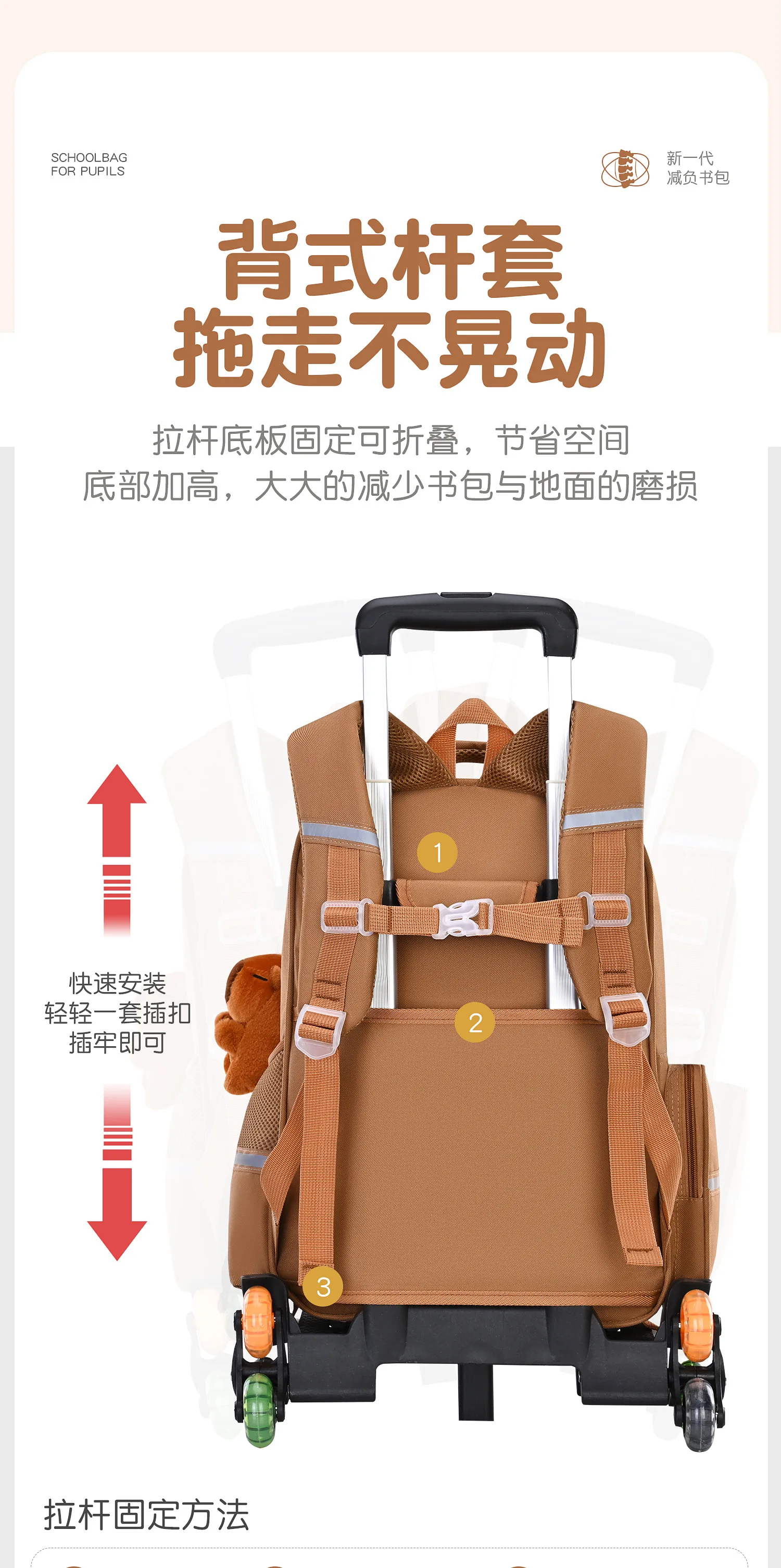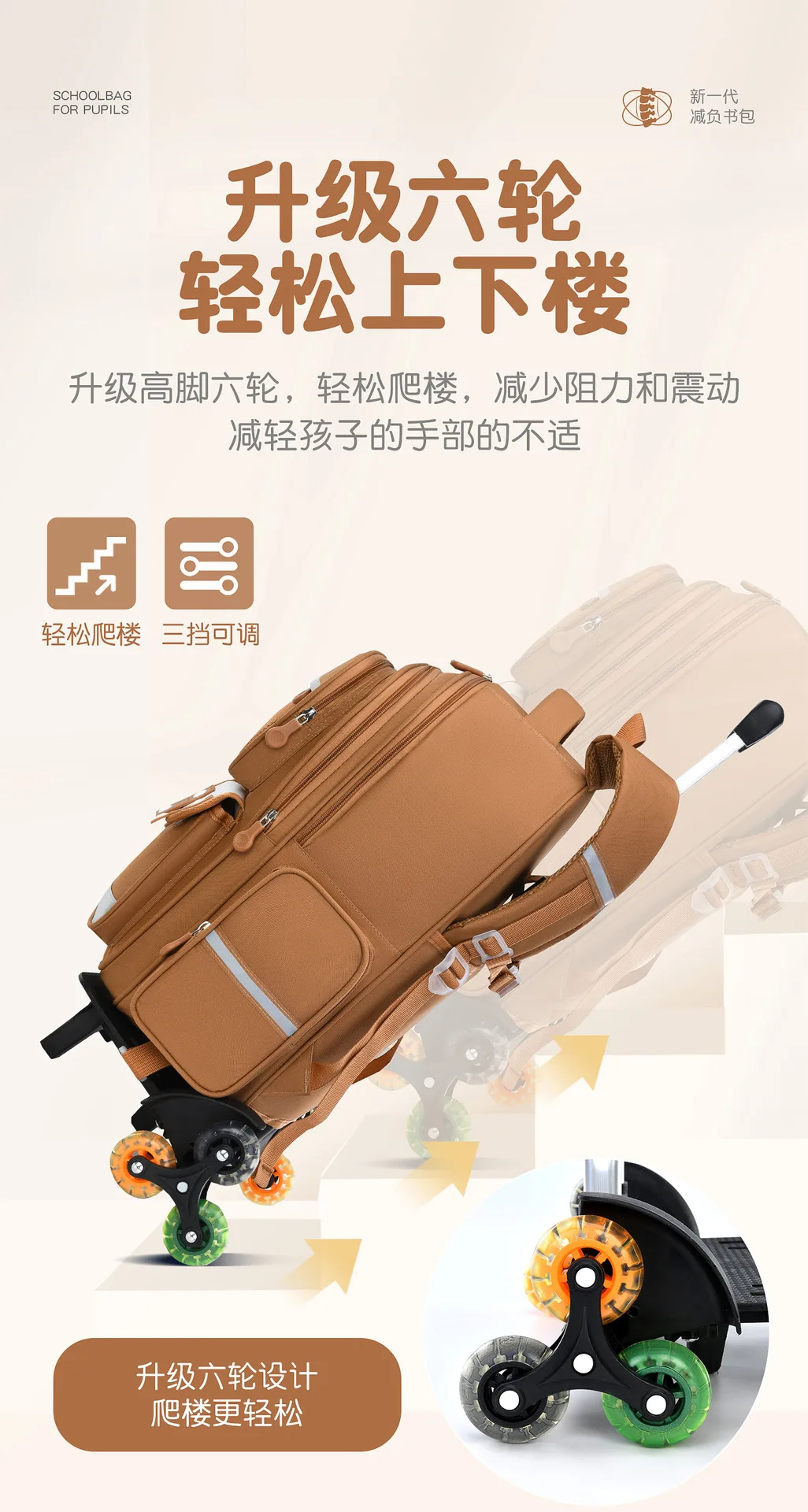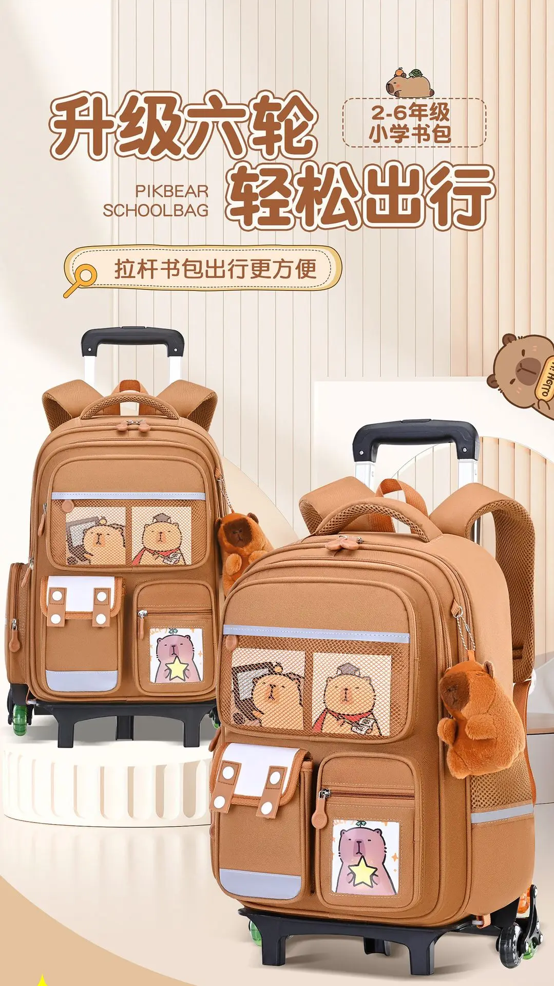 Capybara Children Cartoon School Backpack with Wheels Students Bags for Girls Boys Trolley Schoolbag Rolling Wheeled Backpacks
