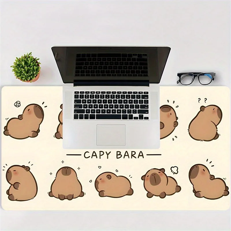 Cute Cartoon Brown Capybara Mouse Pad Large Computer Office Game Table Mats XXL 90x40 Rubber Non-slip Keyboard Mat Long Desk Pad