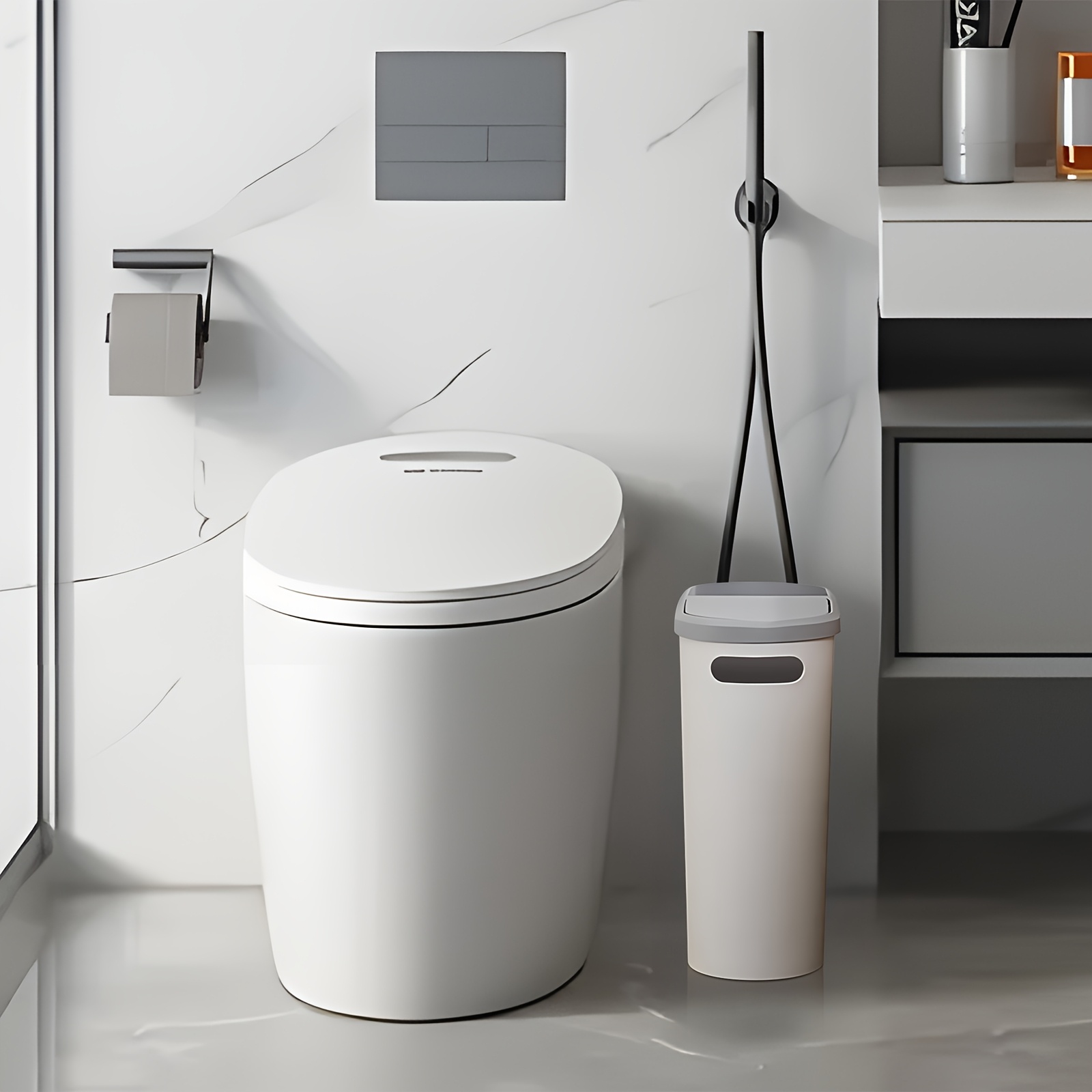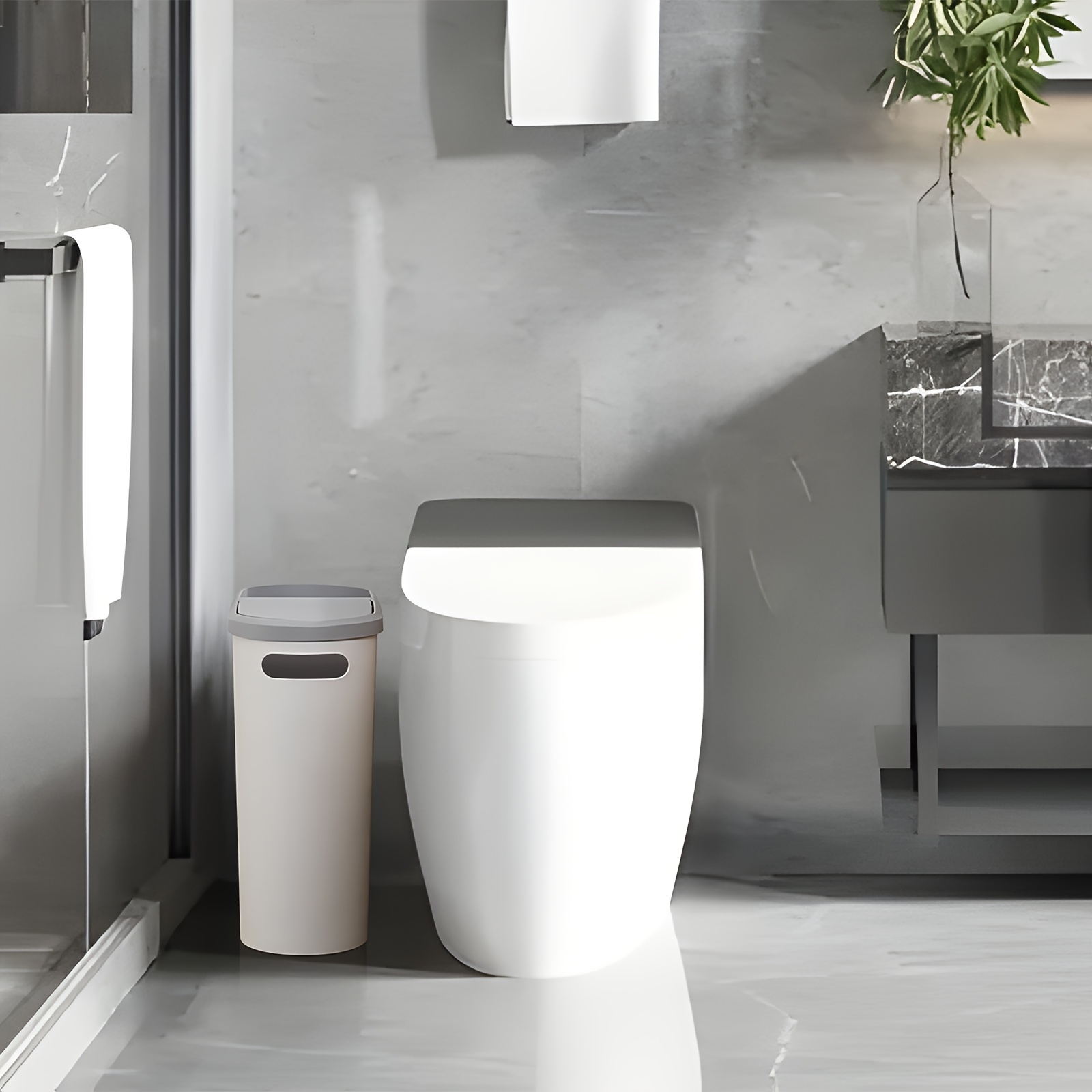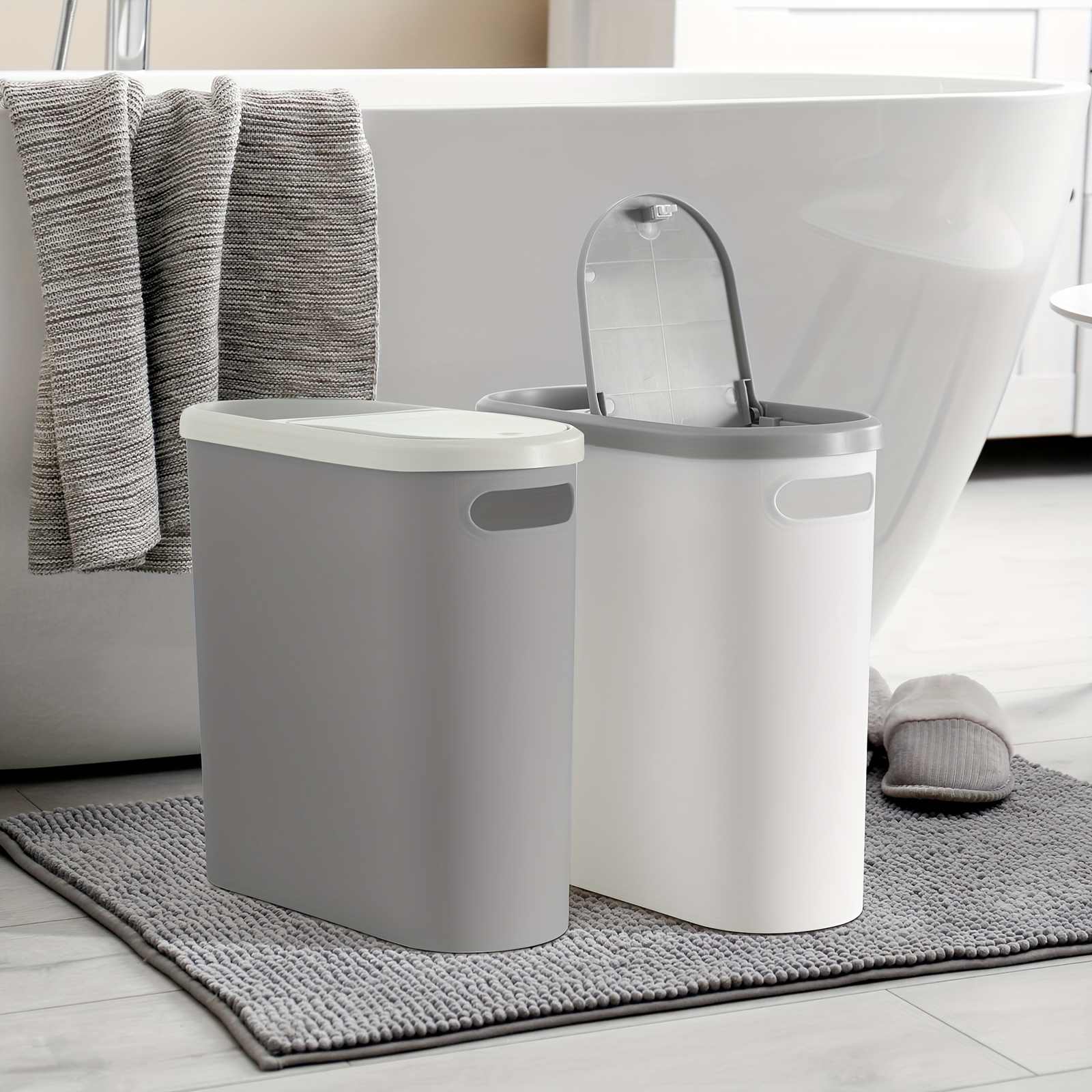 Bathroom Trash Can, Compact And Durable Plastic Wastebasket with Built-in Handles, Easy to Clean, Rustproof, Space-Saving Design, Ideal for Small Spaces In Bathroom, Laundry, And Home Office
