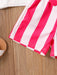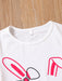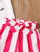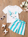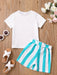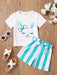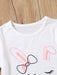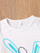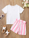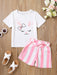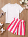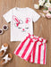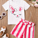 2pcs Toddler Girls Easter Cartoon Bunny Graphic T-Shirts Round Neck Short Sleeve Tees Top & Elastic Waist Belted Stripe Shorts Set Kids Summer Outdoor Clothes