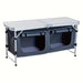 4ft Floral White MDF Tabletop Outdoor Folding Table Aluminum Frame Rectangular with Blue Cloth Cabinet 3 Height Adjustments