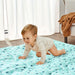 50" x 50" Portable Play Mat - Soft Turquoise Plush Padding, Durable Polyester for Safe Floor Protection, Foldable Geometric Pattern Activity Mat for Youngsters